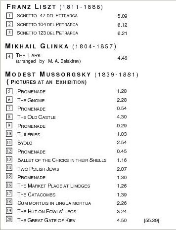των συνθετών Liszt, Glinka, Mussorgsky.